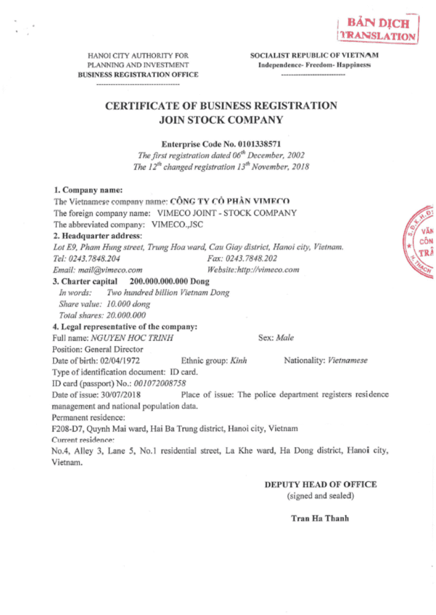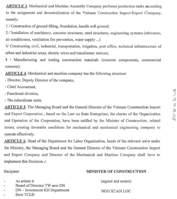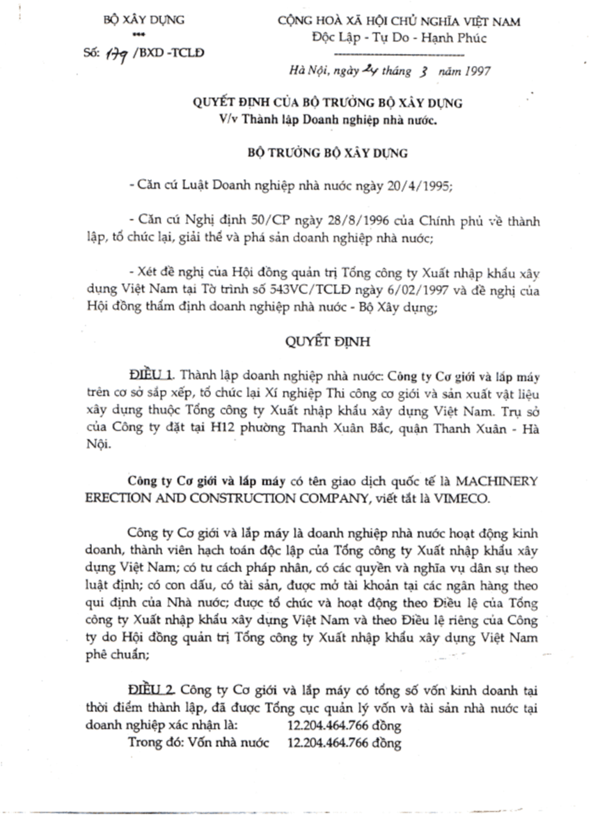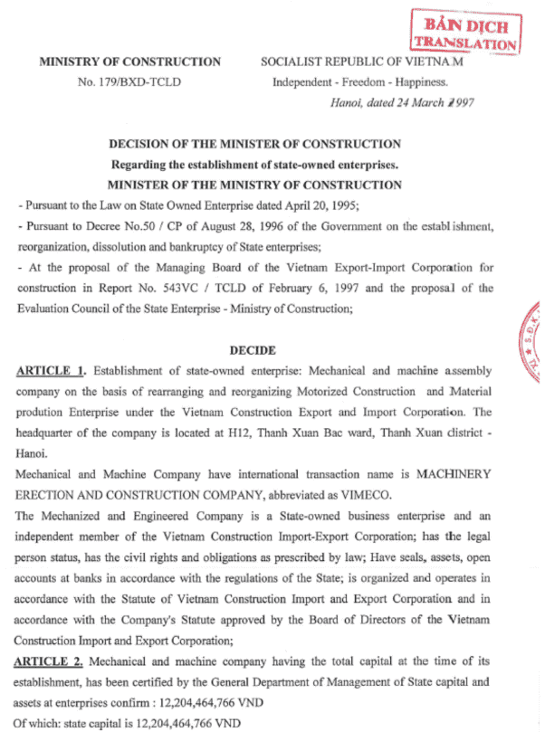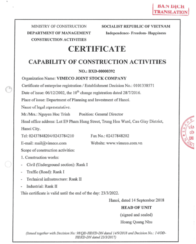 Chứng chỉ năng lực hoạt động xây dựng, Quyết định thành lập doanh nghiệp...