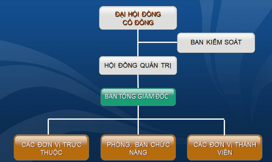 Đại hội đồng cổ đông, Ban kiểm soát, Hội đồng quan trị, Ban tổng giảm đốc...